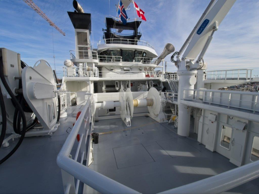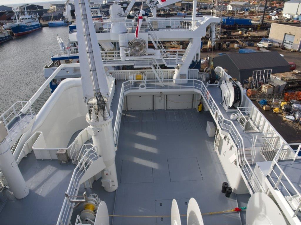 The trawl work deck and stores on the new HÁKON from Karstensen Shipyard