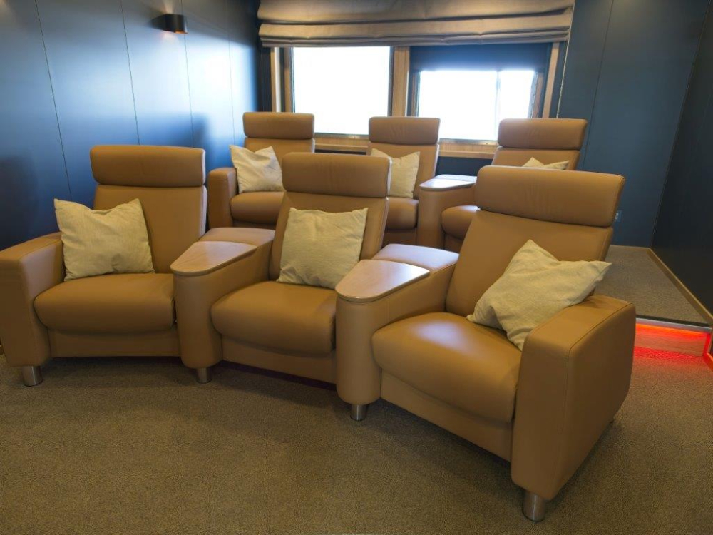 The mess room, galley and cinema onboard the Karstensen Shipyard new build, HÁKON
