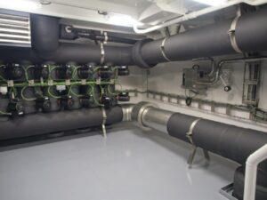 The electric system is equipped with a Power Management System (PMS) and features floating frequency control for optimised fuel efficiency. This enables variable propeller RPMs from 108 to 130.