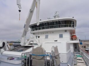 Deck machinery and fish handling systems are supplied by Karmøy Winch and Storm Cranes, including: